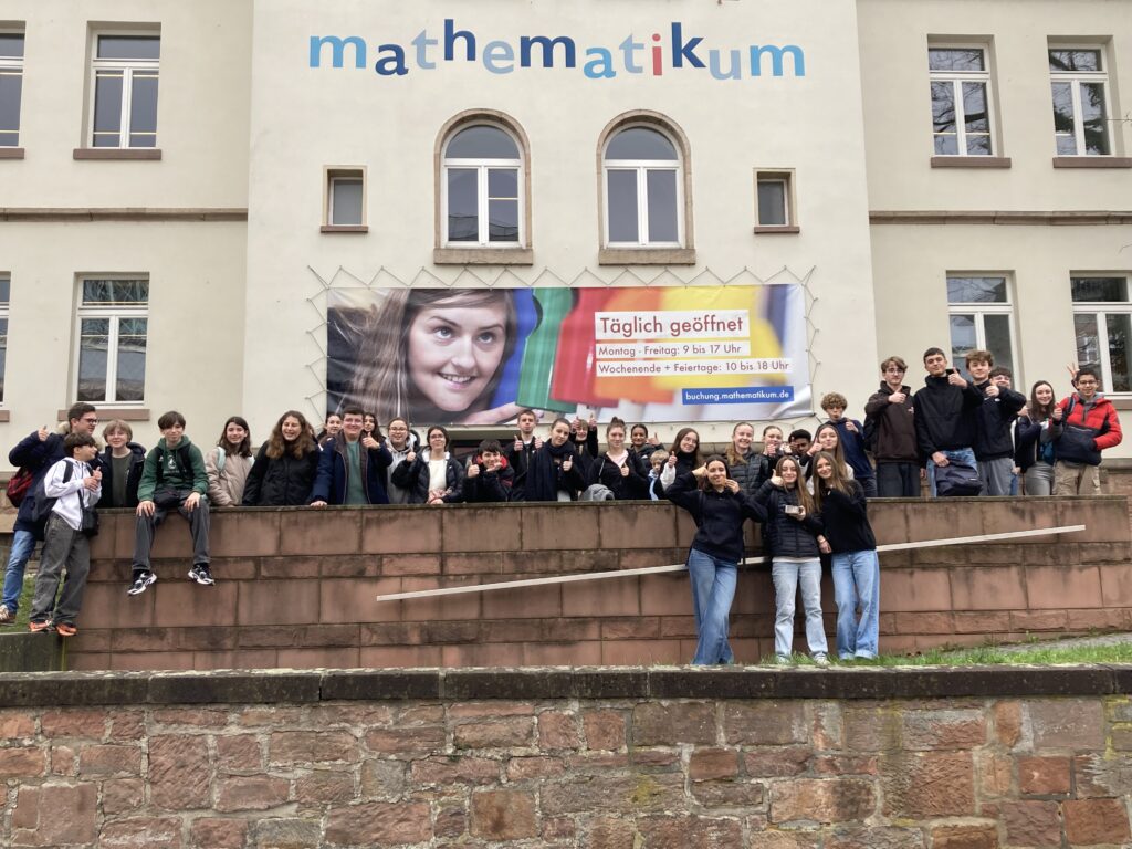 Ce matin le groupe de français s’est rendu à pieds au Mathematikum qui est l’unique musée dédié aux mathématiques en Allemagne et qui a la particularité d’être interactif et adapté à toutes sortes de publics. Pendant deux heures nous avons donc pu expérimenter les maths de manière ludique en choisissant parmi les 200 expériences différentes ! De quoi amuser même les plus réfractaires.